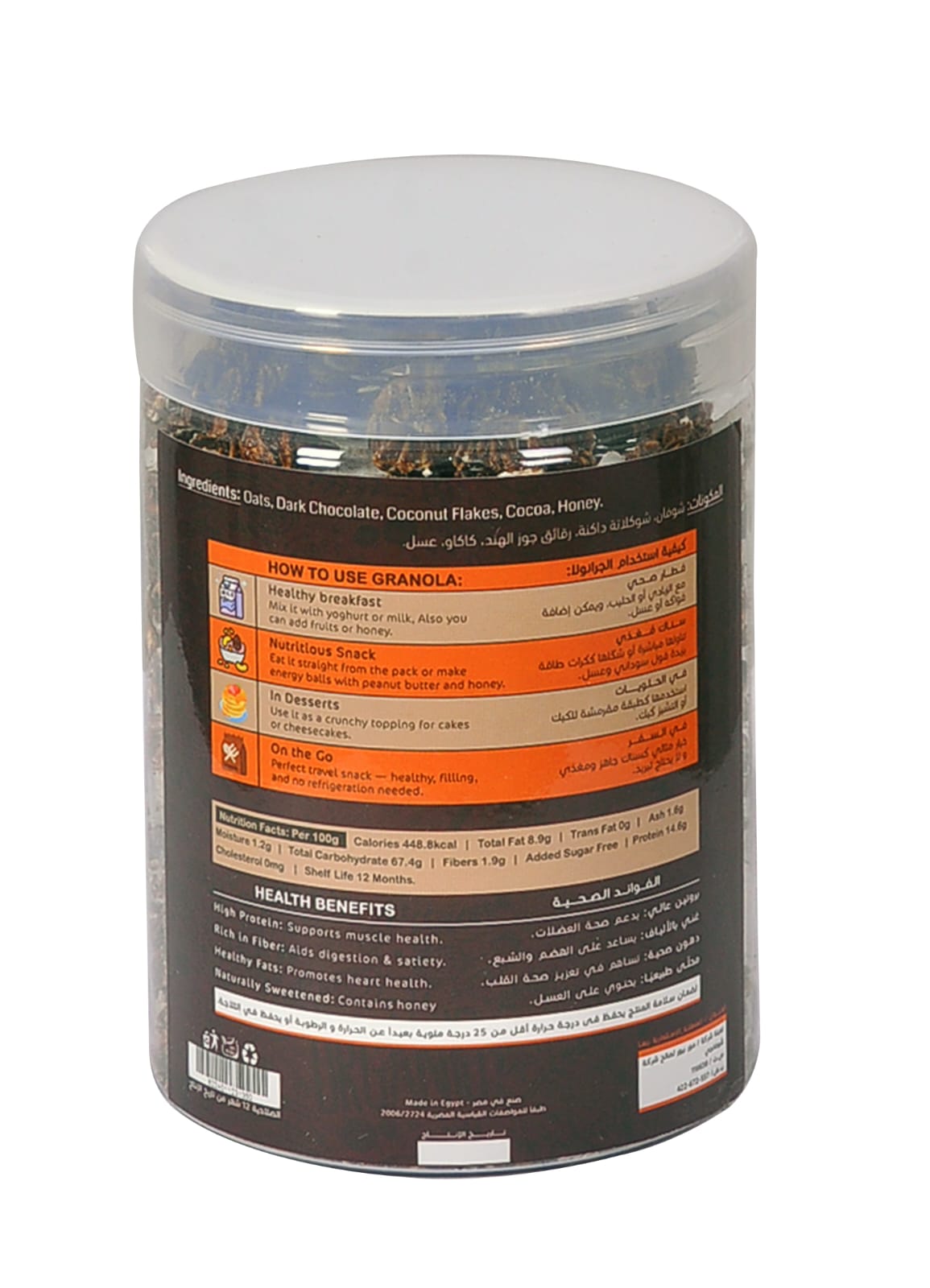 الجرانولا مزيج غني من الشوفان والمكسرات والبذور والعسل، تُحمَّص للحصول على قرمشة مميزة ونكهة لذيذة. تعتبر خيارًا مثاليًا لبدء اليوم بطاقة عالية، فهي مصدر ممتاز للألياف والبروتين والدهون الصحية. تساعد الجرانولا في تعزيز الهضم، وتنظيم الشهية، ودعم النشاط طوال اليوم.