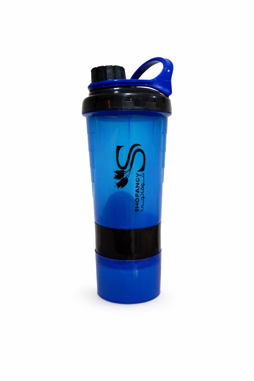 شيكر رياضي عشان يسهل عليه خلط المكملات الغذائيه وكمان فيه مكان تخزن فيه مكملات كبسول او اقراص تحت او حتى مكان لاسكوب يتنقل معاك في كل مكان